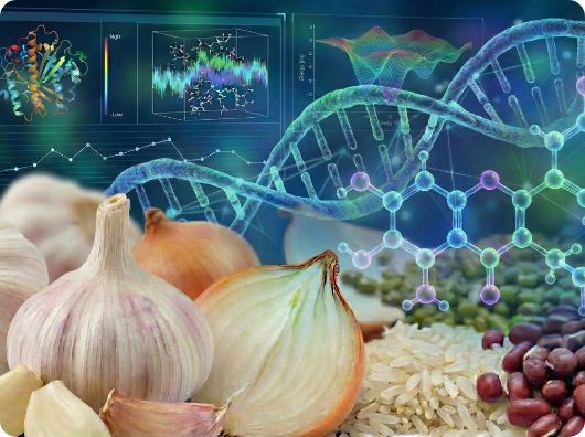 ニンニクやタマネギに含まれる硫黄を含む成分や、米や小豆由来の植物タンパク質に注目し、その健康作用や疾病予防への可能性を化学的に探究しています。食成分は体内で単独ではなく相互に影響し合いながら機能を発揮します。私たちは、精密な分析や実験に加えて、計算化学や分子シミュレーションを用いて、その複雑なメカニズムの解明に挑んでいます。食の安全と健康に資する新しい食品素材の創出を目指し、まだ誰も知らない“食とからだのしくみ”を明らかにします。