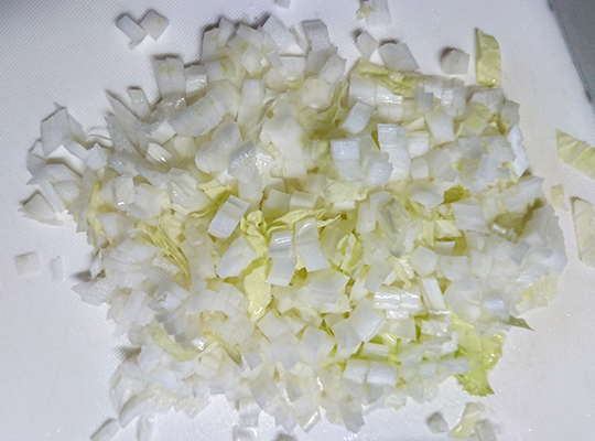 1白菜・ニラを刻んでボールに入れ塩をふって揉みこみしんなりさせます。