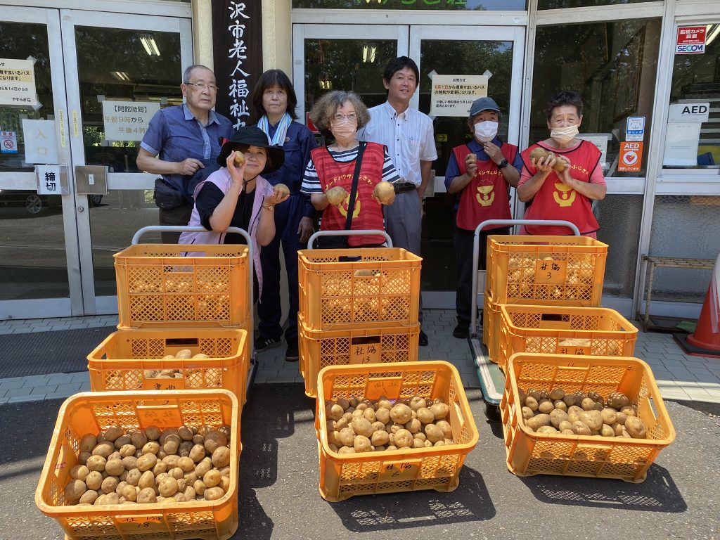 日本大学 生物資源科学部 校友会 神奈川県支部の畑作業グループは、7月5日にジャガイモ約200㎏を藤沢市のフードバンクへ寄贈しました。このジャガイモは、昨秋よりキャンパス内の落葉を集めて作った腐葉土と堆肥に加え、米糠などの有機肥料を主体に土作りし、丹精込めて収穫したものです。フードバンクは市民の善意により、寄贈された余った食料品などを生活困窮者などに無料で配布されています。昨年度は延べ2901人の方々が利用されたとのことです。同校友会はこれまでにも、ジャガイモやサツマイモなどの根菜類をはじめ、今年1月にはチンゲンサイやコマツナ、ネギ等の葉物野菜をコンテナ4箱分を寄贈しています。今回の引き渡しには、稗貫支部長、津曲、松添、井上の畑グループメンバーに加えてご協力いただいた市民センター主幹、地区社協副会長、フードバンク代表、副代表が参加しました。