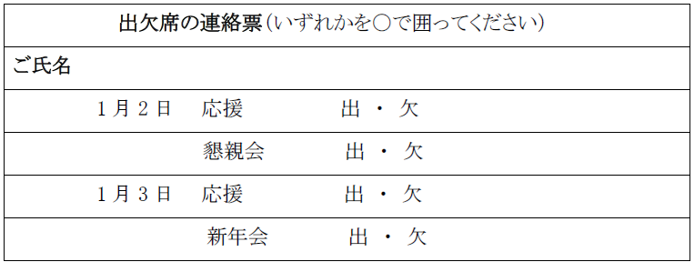 1 月 3 日・駅伝応援&新年会は 6 ,000 円です。