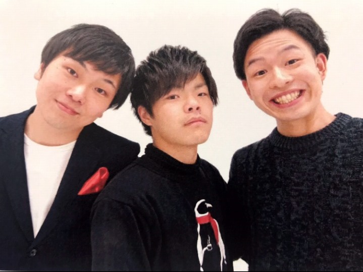 食品ビジネス学科4年生の稲垣優大さんが参加する、お笑いトリオ“ルービック”。