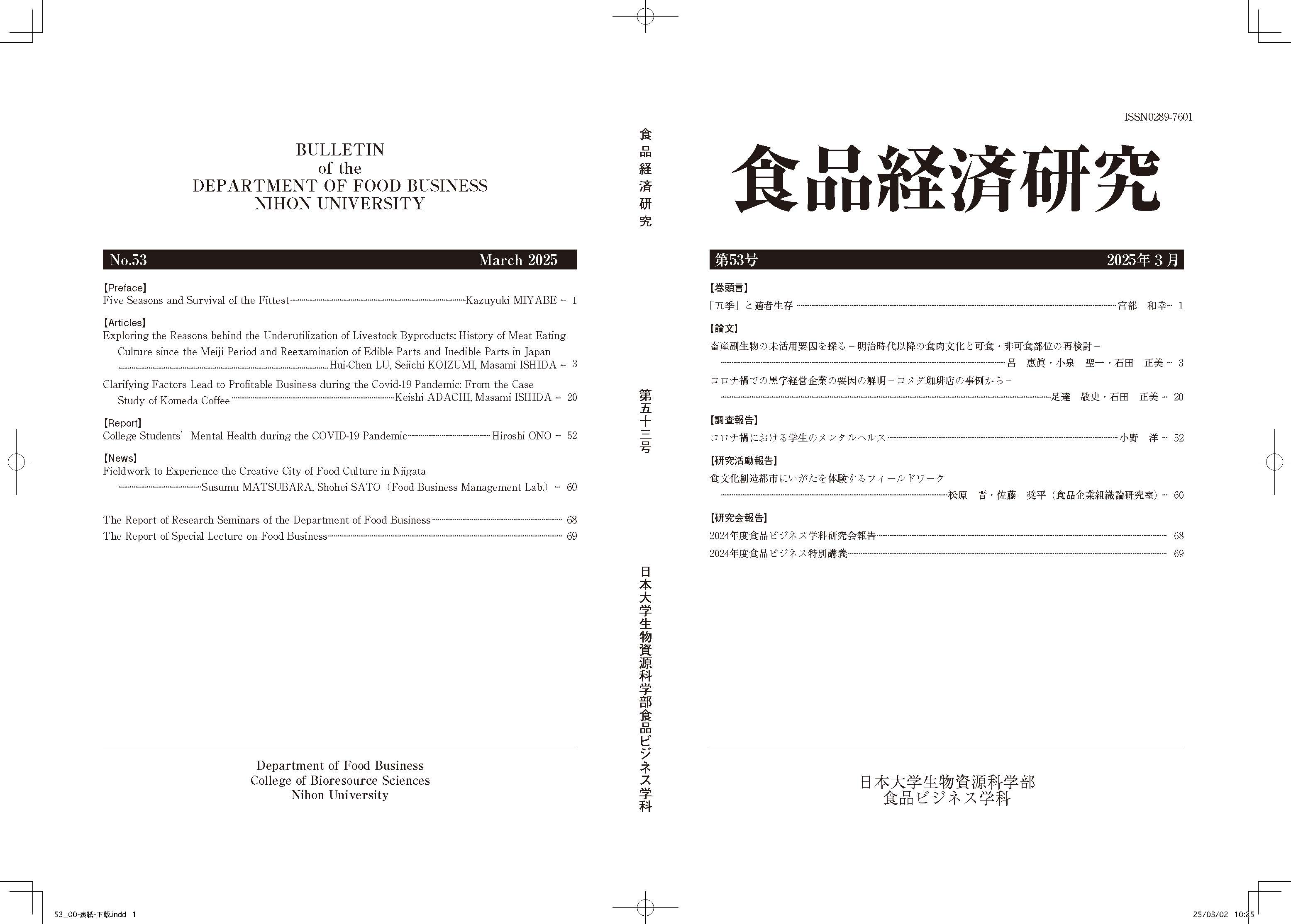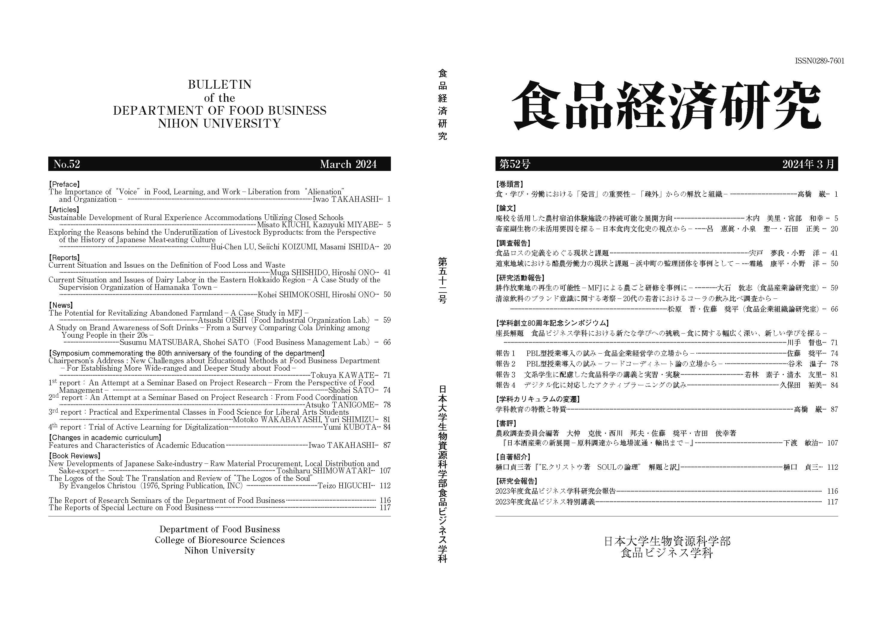 【第50号記念特集】 『別冊 食品経済研究』と学科名称変更に伴う理論武装(髙橋正郎・安村碩之)