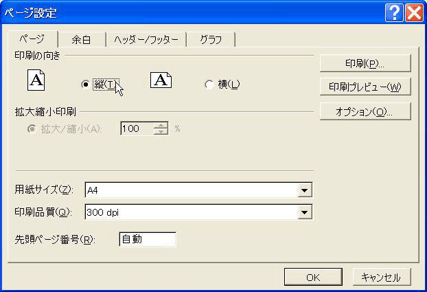 印刷の向きは「縦」、用紙サイズは「A4」