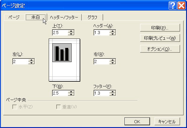 エクセルではグラフの大きさを直接調節することはできないので、印刷のマージンを調節して間接的にグラフの大きさを調節します。