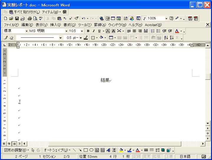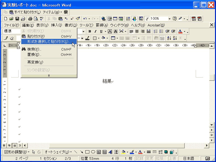 続いて、ワードのグラフを貼り付ける行をクリックしてください。