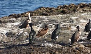 江の島の東南端の堤防から見える岩礁に、波が静かな日には大抵ウミウが群れで休んでいます。先日、このウミウ群の中にカツオドリの若鳥1羽を見つけました。カツオドリは南方の沿岸に生息する海鳥で、神奈川県では生息域の北限付近にあたるため、やや稀です。...