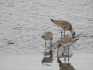 9/18(木)12時15分、江の島大橋に沿った砂嘴で見慣れない3羽の鳥を見つけました。