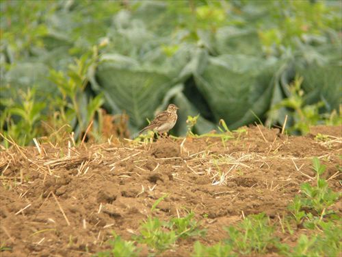 大学のある台地上の南側や東側には、広い畑があって、朝の静かな時間帯にはヒバリのさえずりが聞かれます。ヒバリはスズメより一回り大きな小鳥です。