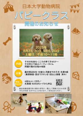 行動診療科では年3回ほど、パピークラスを開催しています。