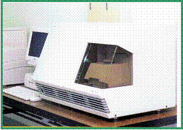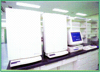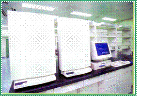 生命の本質である遺伝情報を担うDNAの塩基配列を解読する装置で、一晩にして5万塩基の配列を読みとる力を持っています。センターにおける多くの機器の中で、分子生物学の研究には特に中心的な役割を果たしています。